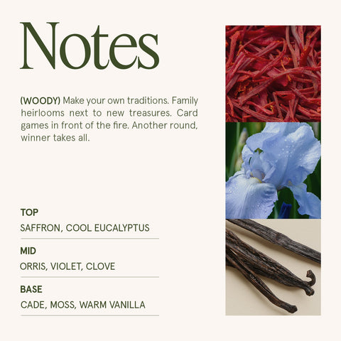 A captivating blend of saffron and fresh thyme evolves into a heart of velvety orris, raspberry, and violet, while a base of rugged cade, earthy moss, and warm vanilla lends depth to this aromatic fragrance.