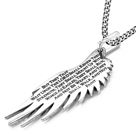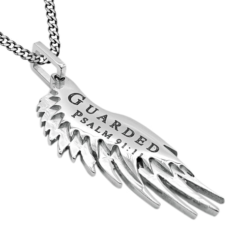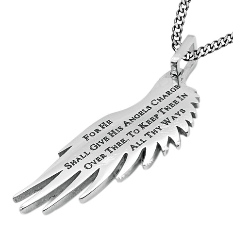 Men's Michael's Wing; high polish finish. Front engraving with black enamel fill. Every order comes with complimentary velvet gift bag. Orders ship in 1-2 business days from Phoenix, Arizona