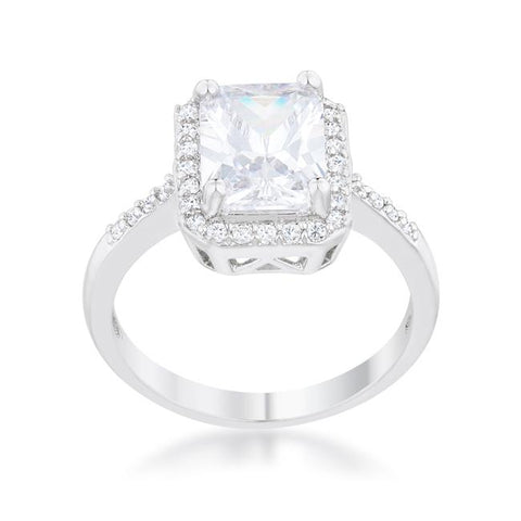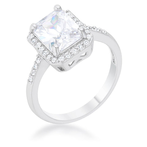 Small pave set stones accent the setting of a classic radiant-style stone in this beautifully classic ring.