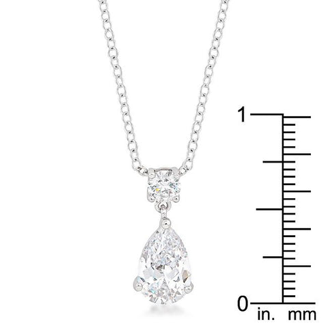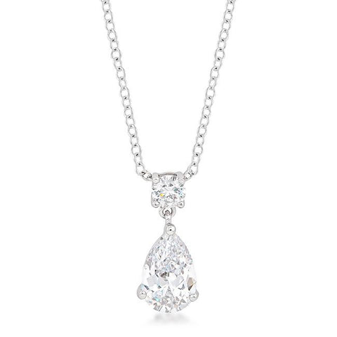 The Chandelier Pear Cubic Zirconia Pendant goes with everything from youre favorite tank top and jeans to your little black dress. Its pear cubic zirconia hangs with beauty from anther radiant round cut cubic zirconia. Its the perfect addition to your jewelry box. Genuine Rhodium Plating is achieved using an electroplating process that coats the item with heavy layers of rhodium a close cousin to platinum which gives our jewelry a platinum luster.