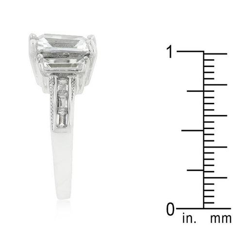 This ring is embellished with emerald and round cubic zirconia for added engagement style. Our genuine rhodium finish is achieved using an electroplating process that coats the item with heavy layers of rhodium a close cousin to platinum which gives our jewelry a platinum luster.