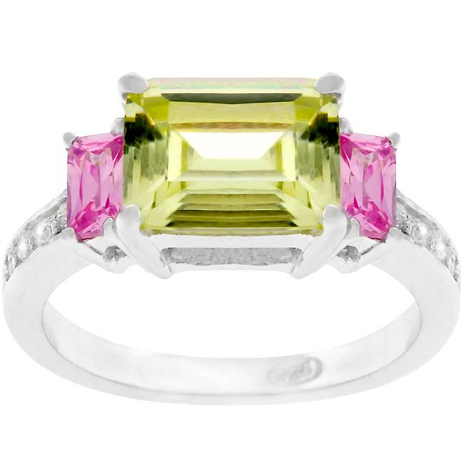 Peridot and pink hues illuminate this masterpiece. This sterling silver engagement ring lends itself to be a great gift. Our genuine rhodium finish is achieved using an electroplating process that coats the item with heavy layers of rhodium a close cousin to platinum which gives our jewelry a platinum luster.