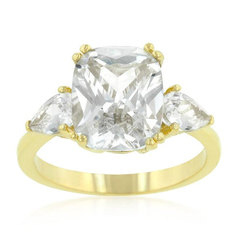 This ring features a classic triplet style with luxurious gold bonding and brilliant cubic zirconia. 18k plated gold is achieved using an electroplating process that coats the item with heavy layers of 18k Yellow Gold and color-treated to display a perfect 14k Hamilton gold color.